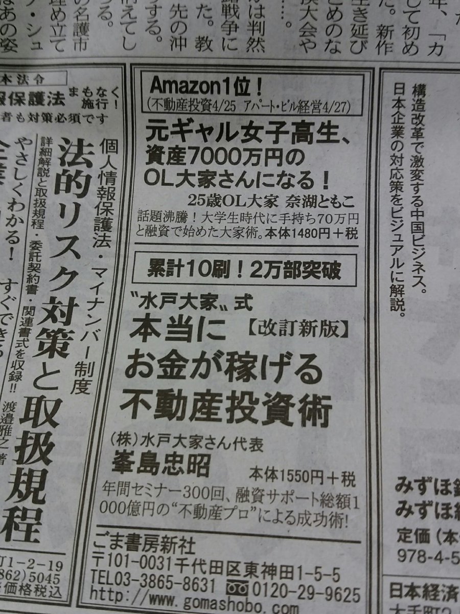 日経1面の書籍広告。