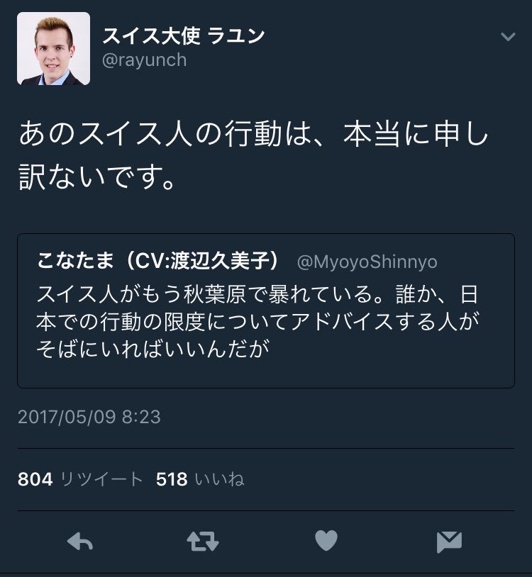 そしてそれを知ったスイスの大使が謝罪するという異例の展開に(笑)
