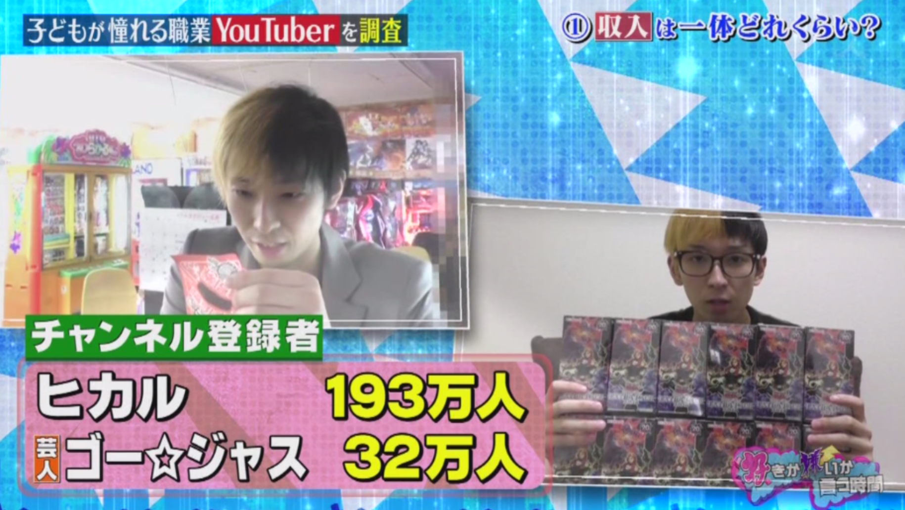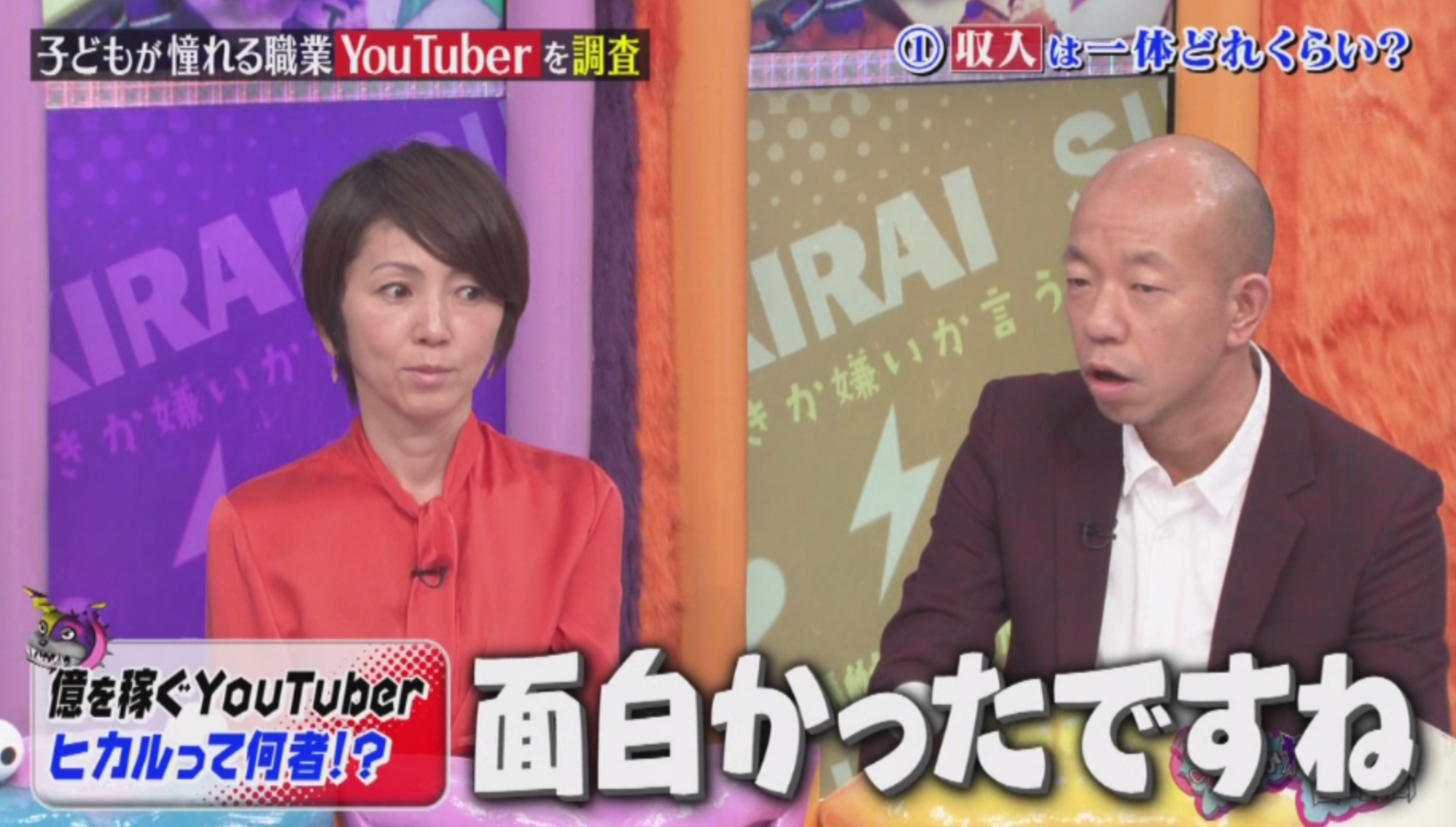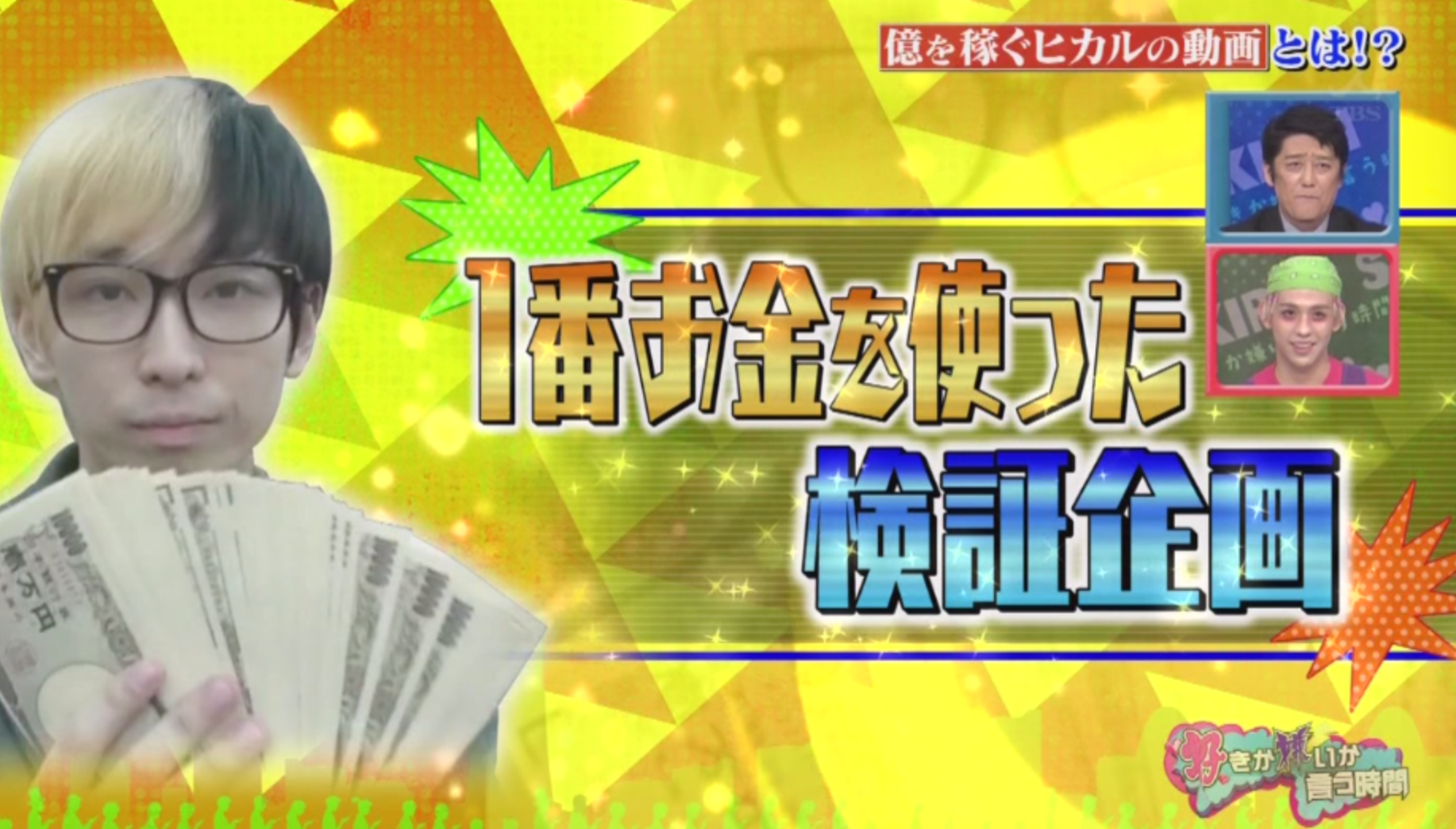 TBSの「好きか嫌いか言う時間」にて、人気YouTuberやニコ生主が複数出演しました。特にヒカル氏の収入に対する反応は大きかったようで、ネットではかなりの盛り上がりに…。坂上忍や小峠も驚きを隠せなかったもよう。