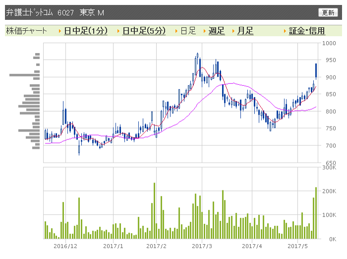 宮内庁長官の公式発表で関連銘柄が三菱東京UFJ銀行から弁護士ドットコムに変わりました