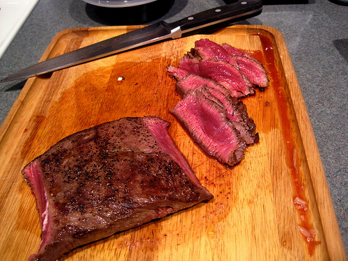 A steak "tres bien cuit."