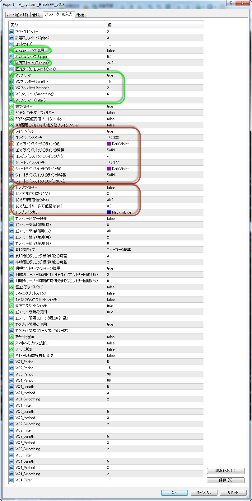 半自動売買システムのパラメーターをご覧ください。