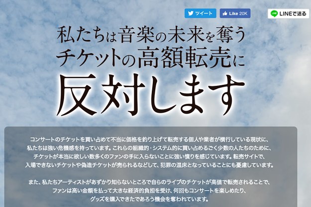 「チケットの高額転売に反対します」とする声明に、嵐や星野源、ゴールデンボンバーなど100組以上のアーティストが賛同した
