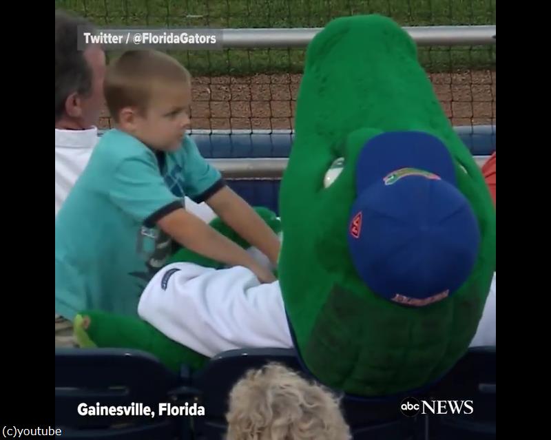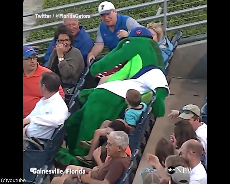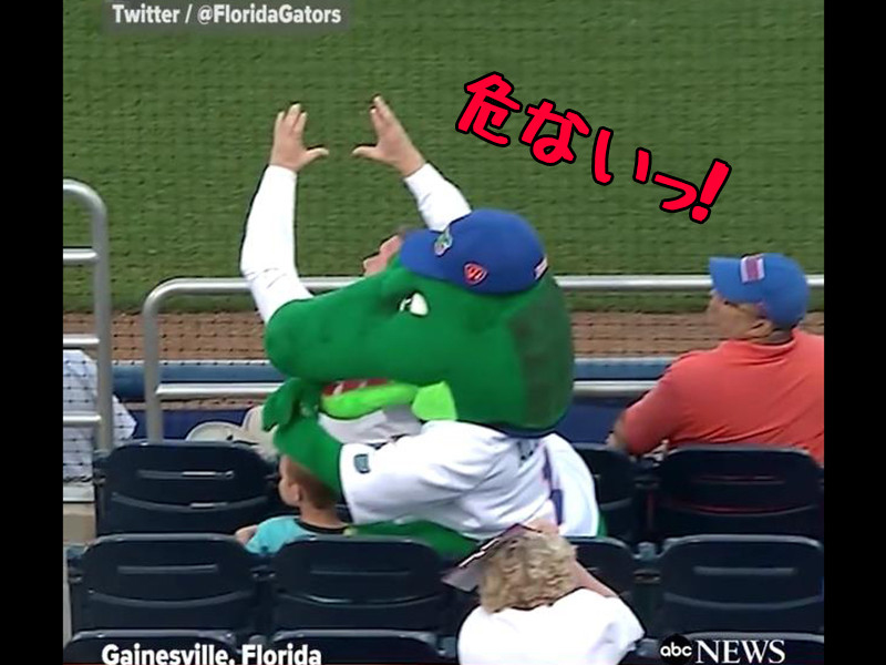「子どもが危ない!」球場のマスコットが体を張ってボールの直撃から守る(動画)