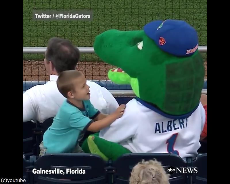 たまたま少年と一緒に試合観戦していたマスコットキャラクター、「アルバート・ゲーター」くん。