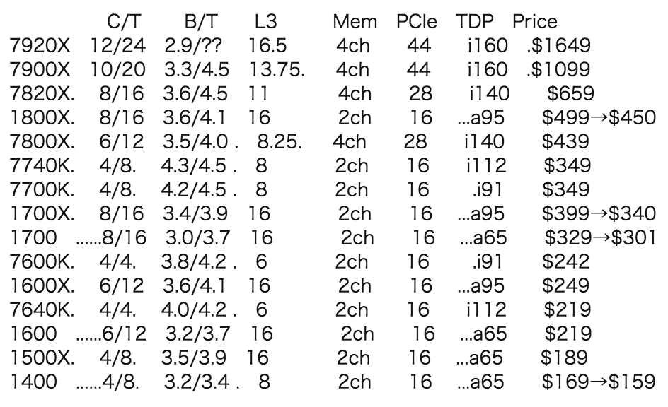 噂で作った価格表がこれらしい(インテルは7000番台)
