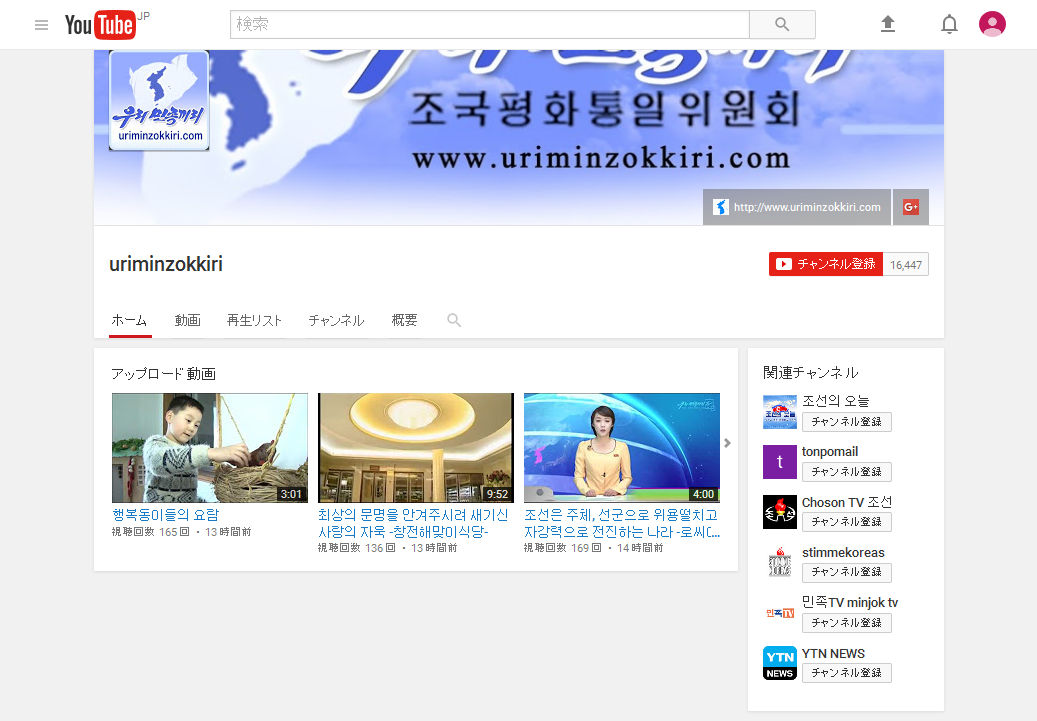 北朝鮮の公式宣伝機関「Uriminzokkiri」のYouTubeチャンネル