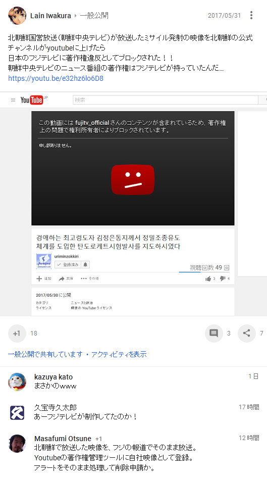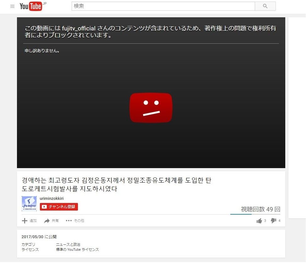 日本のフジテレビに著作権違反としてブロックされた!! https://t.co/oSztoO56Rf