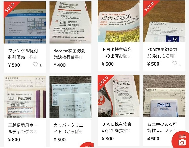 彡(^)(^)『さっすがネット闇市メルカリ!サンリオの議決権行使書はもちろん、大和証券、ファンケル、最も期待値が高そうなドコモもあるぜ(棒』 pic.twitter.com/b1np6YbZ0C