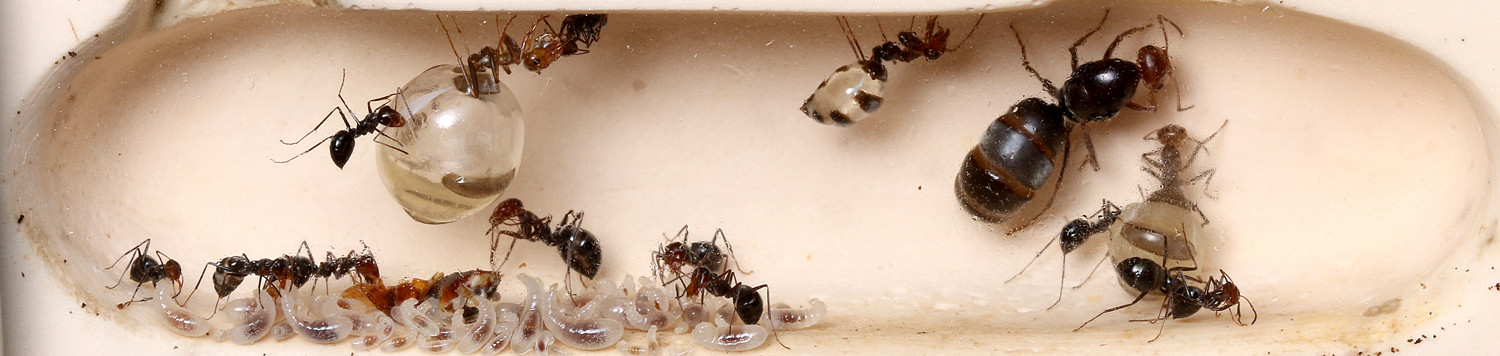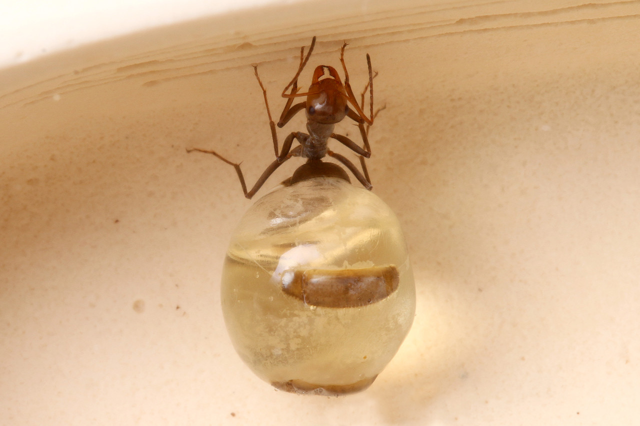 去年から飼育をしているミツツボアリのコロニーですが、2ヶ月前からついに腹部に蜜を貯蔵する蜜壺役の働きアリが現れました!