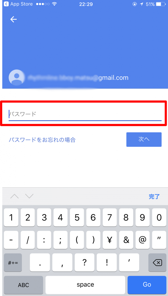 次はGoogleアカウントのパスワードを入力していきます。
