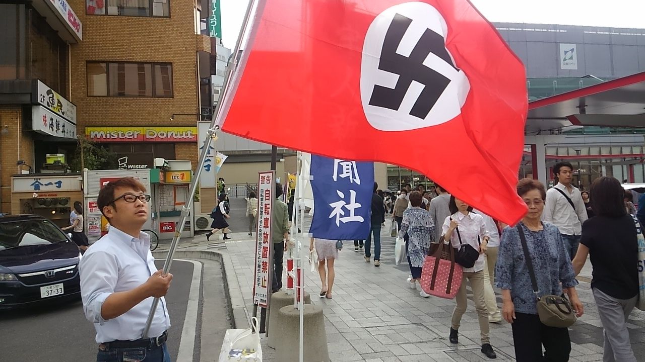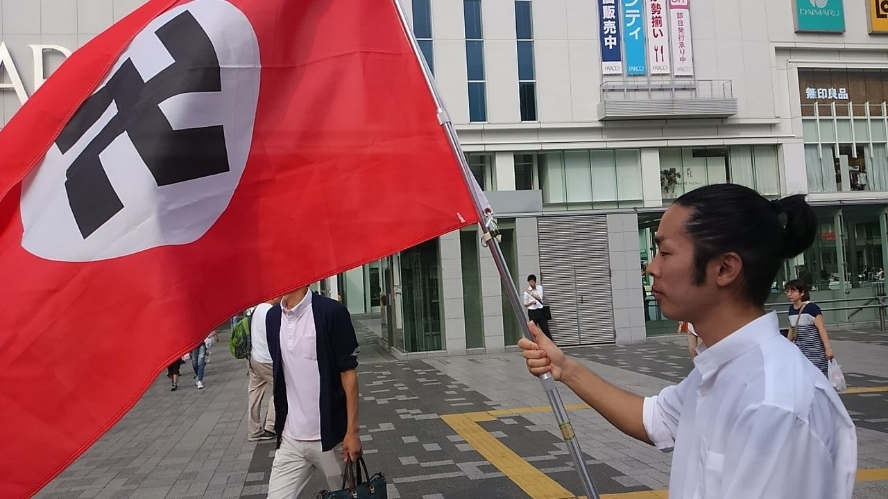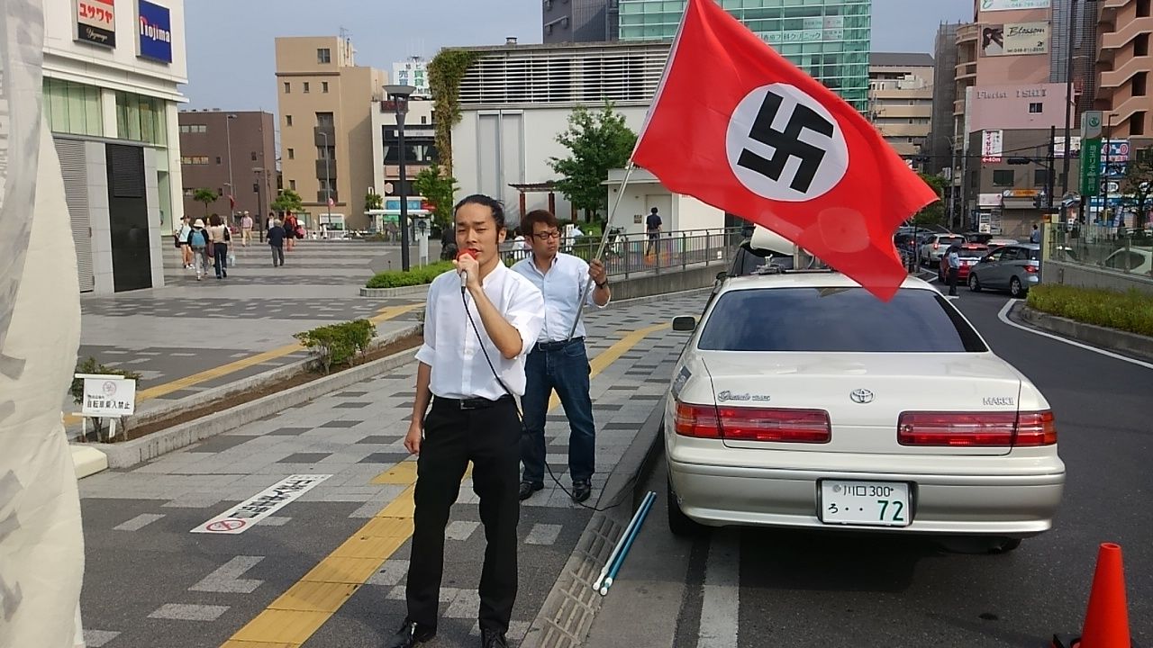 画像:ハーケンクロイツが掲げられた浦和街宣!
