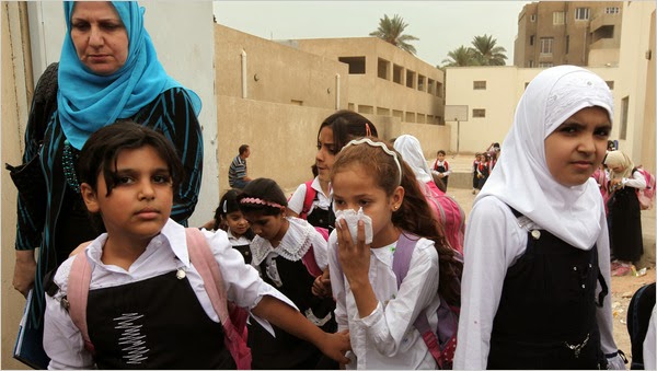 | Children heading to school in Baghdad (NY Times) |