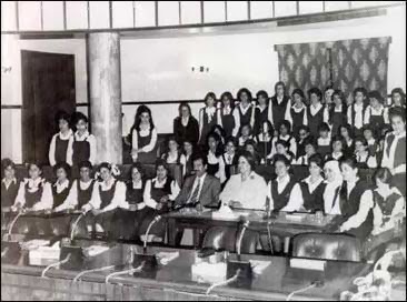 | Saddam posing with Iraqi school girls in the 1970s |
