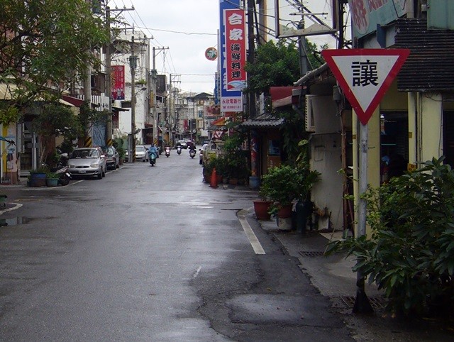 正確に教わったわけではないが、恐らく「こちらが優先道路ではないですよ」という意味であろうという推測は間違っていないと思う。日本なら一時停止の標識がありそうなものだが、台湾では一時停止まではしなくても良いらしい。しかし日本では標識がなければ、すなわちルールで縛らなければ、自律的にモラルを作ることができないからだと考えられなくもない。