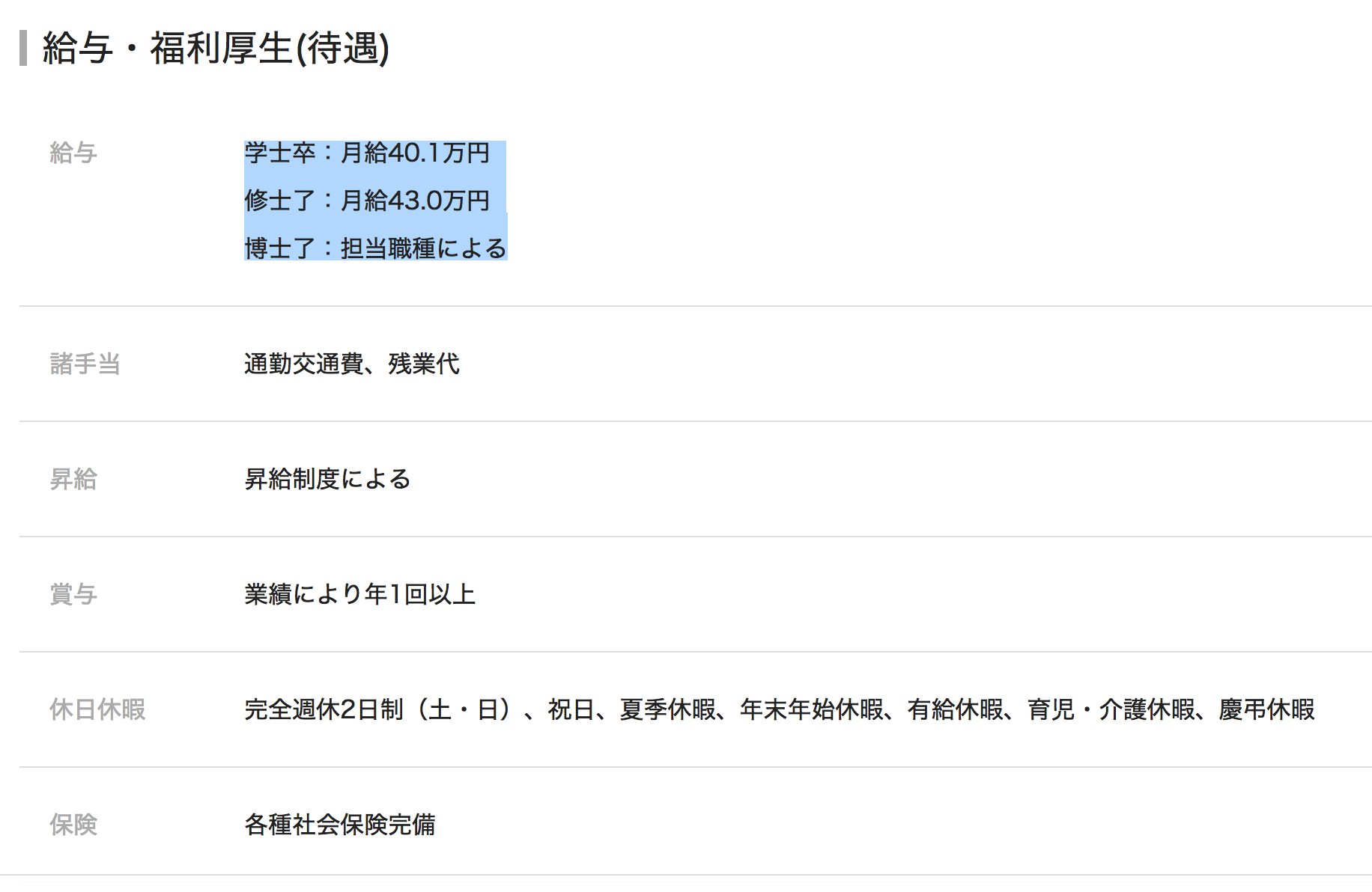 「有給消化50%以上」「完全土日祝休み」ともあり、きちんと休むこともできるようだ。もちろん各種社会保険も完備されており、退職金制度も整っている。