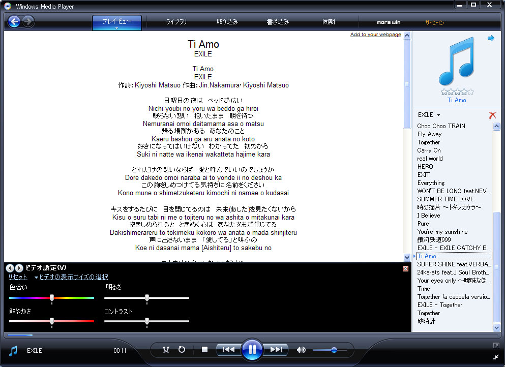 とりあえず、WMP11には歌詞表示機能が備わっていることに気付いたので、それを使ってみた。。