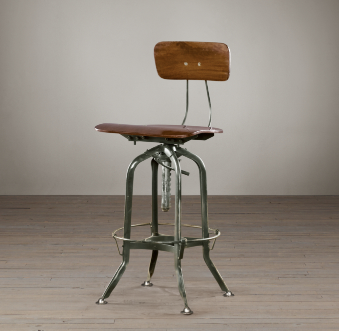 工業系の風合いを表現した適度なヴィンテージ感が素敵なアイテムです。シートを回転させて高さを調節できます。
