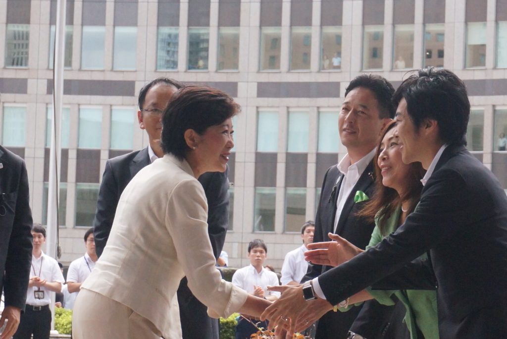 昨夏の選挙で小池都知事で応援し、当選した小池都知事の初登庁を迎えた「わずか」3人の都議会議員として、