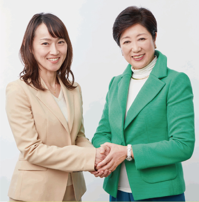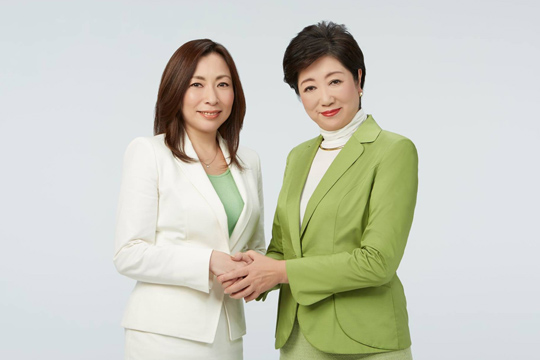 サイエントロジー関連団体の宣伝をしておきながらだんまりを決め込んで当選した上田令子氏(左)と都民ファーストの会代表の小池百合子都知事(右)。上田氏の公式サイトより