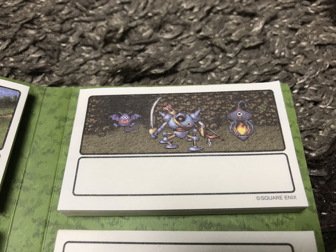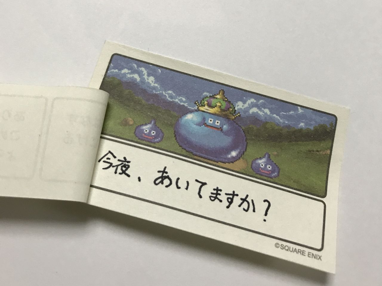 引き出しの中には背表紙を上に向けてI~XIまでキレイに並べられたドラクエ付箋セット達があるのを俺は知っている。きっと、今日はどの付箋使おうかなー?なんて考えながら付箋の背表紙を指でなぞるのだ。何度か往復して、んーコレ!と選んだのは多分イレブンの付箋セット。