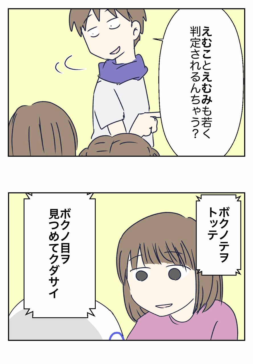 こうやって遊んでいる時も、私とか旦那のえむしをガン見して来ました。