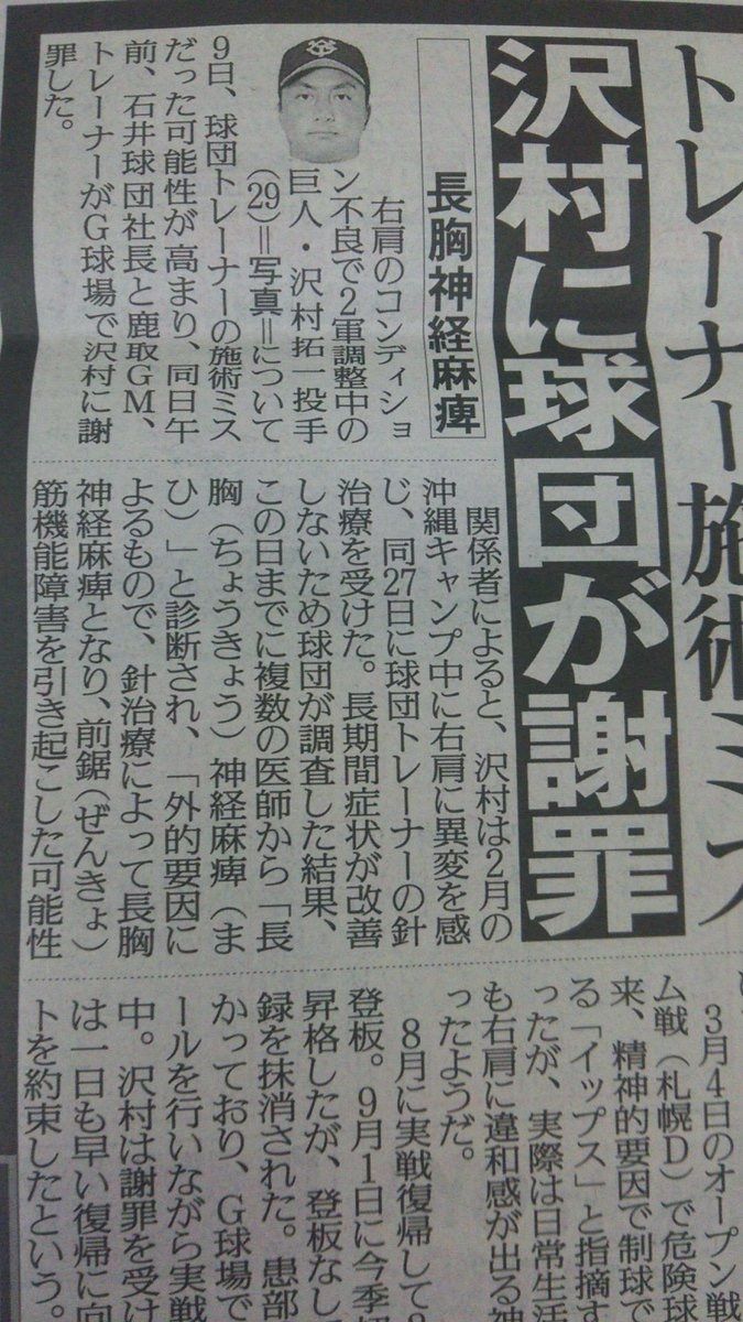それ考えると選手生命に関わるこれが今年一番の問題な気がする