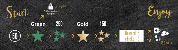 スターバックス リワードのStarのグレードには「Green Star」と「Gold Star」の2種類があり、始めはGreen Starを集めます。1年以内にGreen Starを250Stars集めると、Gold Starが集められるようになります。そしてGold Starが150Star貯まるごとに、700円(税込)までの商品と交換できるReward eTicketが発行されます。
