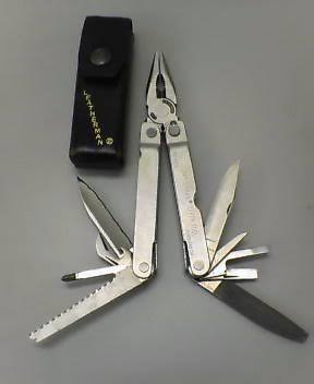 機能はペンチ、ナイフ、ドライバー、ヤスリ、缶切り、ロープ切り、ノコギリ、ワイヤーカッター、電線皮膜剥き、定規。