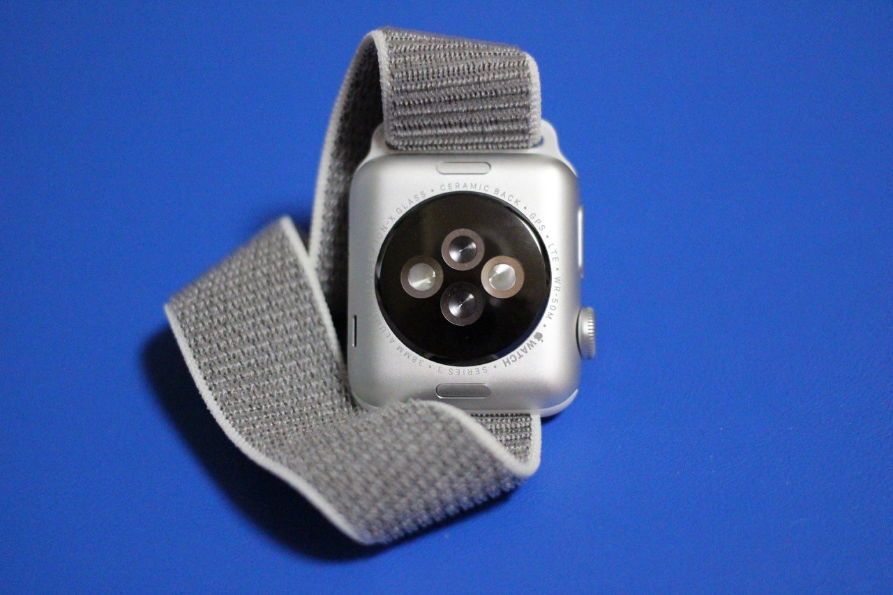 本体の裏側、腕に触れる部分に心拍センサーなどが配置されています。最新プラットフォーム「watchOS 4」によって心拍数やアクティビティーの機能は強化され、より使いやすくわかりやすくなってなりました。主な変更点は「watchOS 4 のアップデートについて - Apple サポート」あたりを参照のこと。