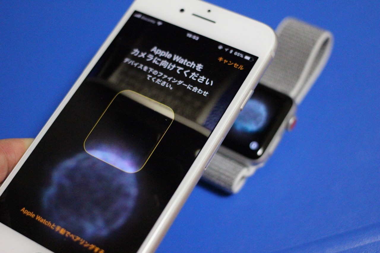 セットアップはApple Watch Series 3を起動したら連携させるiPhoneを近づけ、iPhoneにペアリング開始画面が表示されたら「続ける」を押し、Apple Watchの画面をiPhoneのカメラで読み取ると簡単にペアリングでき、その後、iPhone側で初期設定を行えばOKです。