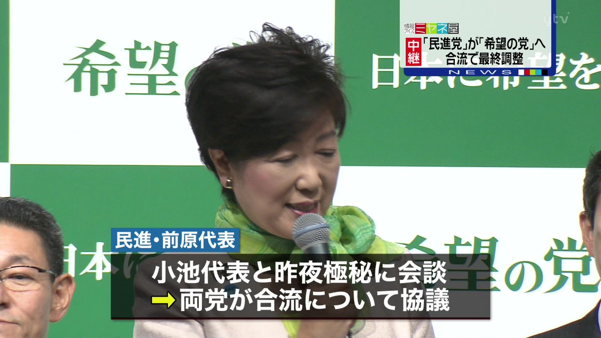 総選挙で与党に対抗して政権交代を目指すため、民進党と希望の党が合流する方向となった。民進党の前原代表と希望の党の小池代表は26日夜、極秘に会談し両党が合流する可能性について協議した。その結果、両党は事実上、合流する方向で最終調整に入った。