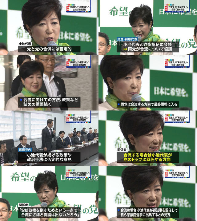 民進党内には小池代表が掲げる政策や政治手法に否定的な意見もあったが、関係者によると「安倍政権を倒すためという一点で合流にさほど異論は出ないだろう」と話している。