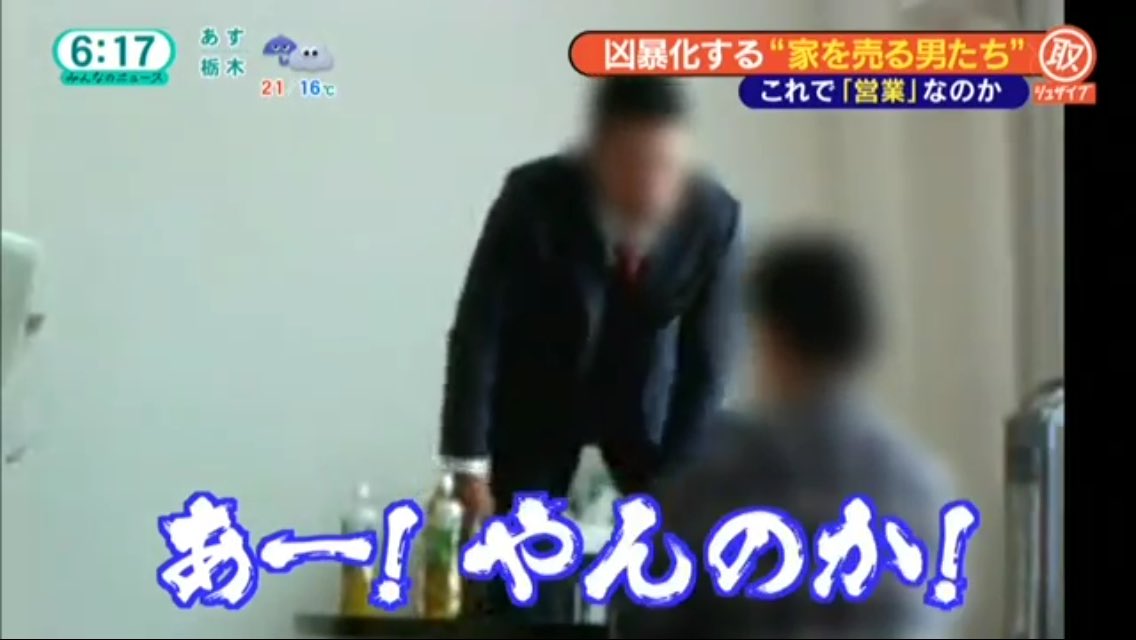 2017年09月30日 投資用マンションを押し売りするツーブロックゴリラ、あまりのクセの強さに会社が特定されるも既に廃業 カテゴリ:不動産・住宅・REIT・建設ほのぼの・感動・炎上・もはや株とか関係ない http://arigatou-holdings.co.jp/onaji-kakko/ スポンサーリンク コメント コメント一覧 1. 全力で名無しさん 2017年09月30日 12:22 ID:UfWPzmzs0 こんなん麻酔銃で眠らせて沈めろよ… 2. 全力で名無しさん 2017年09月30日 12:25 ID:WlLo7jA30 こう言う輩は徹底的に逮捕されてくれないかね 3. 全力で名無しさん 2017年09月30日 12:48 ID:9IdY2sJJ0 全力で脅しにかかるゴリラ! コメントフォーム 名前 コメント 評価する リセット リセット 顔 星 投稿する 情報を記憶