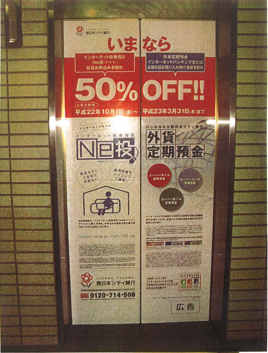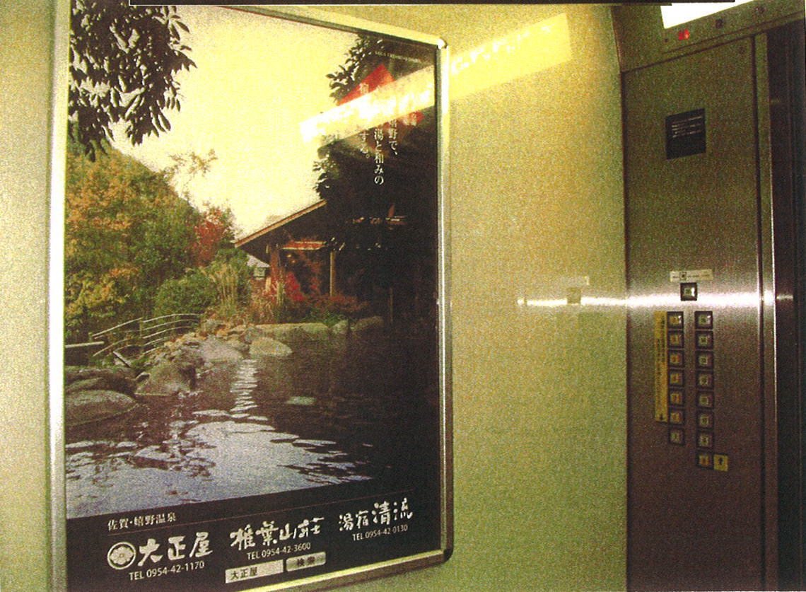 市役所本庁のエレベーターの広告