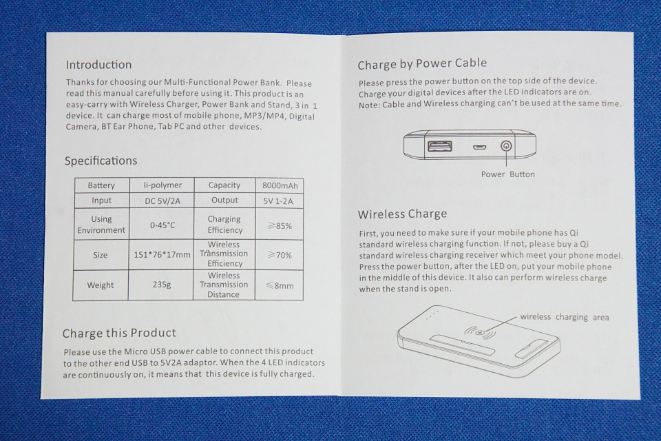 今回ご紹介する「Sharllen 8000mAh Qi ワイヤレスチャージャー パワーバンク」もQi規格に対応したモバイルバッテリーで有線でも無線でもスマホへの充電が可能ですが、それだけでは他社の同等製品とあまり変わりがありません。