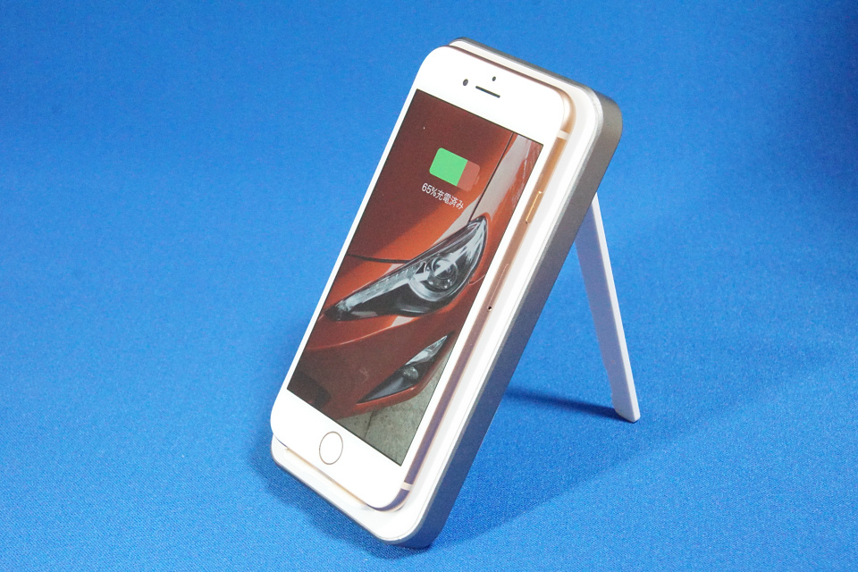 本製品にはさらにキックスタンドが内蔵されており、スマホを縦にも横にも立てた状態で充電できる点が最大の特徴となっています。果たしてQiによるワイヤレス充電とスタンド機能はモバイルシーンでどこまで便利に使えるのでしょうか。iPhone 8での使用感をレビューします。