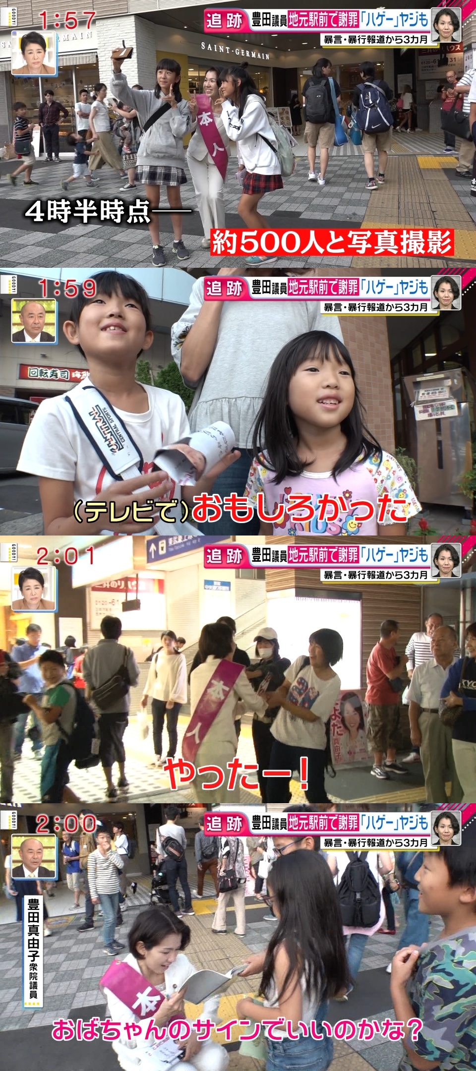 白い目で見られたり、相当の批判覚悟で大勢の市民の行きかう場に出てきてのビラ配りは少し見直しました。いろいろ髪型、眉毛なども作戦は立てたのだろうけどあれだけのインパクトある暴言だからね。とりあえず、雅子さんよりはよっぽど根性はある。