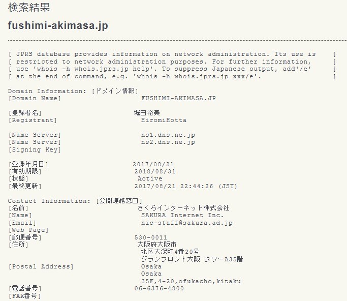 伏見顕正のドメイン取得が,でれでれ草堀田裕美wwwwwww