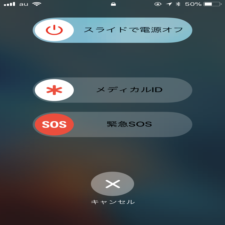 スリープボタンを5回連打すると「電源オフ」、通報機能の「緊急SOS」、そして医療情報が閲覧できる「メディカル ID」が表示される。