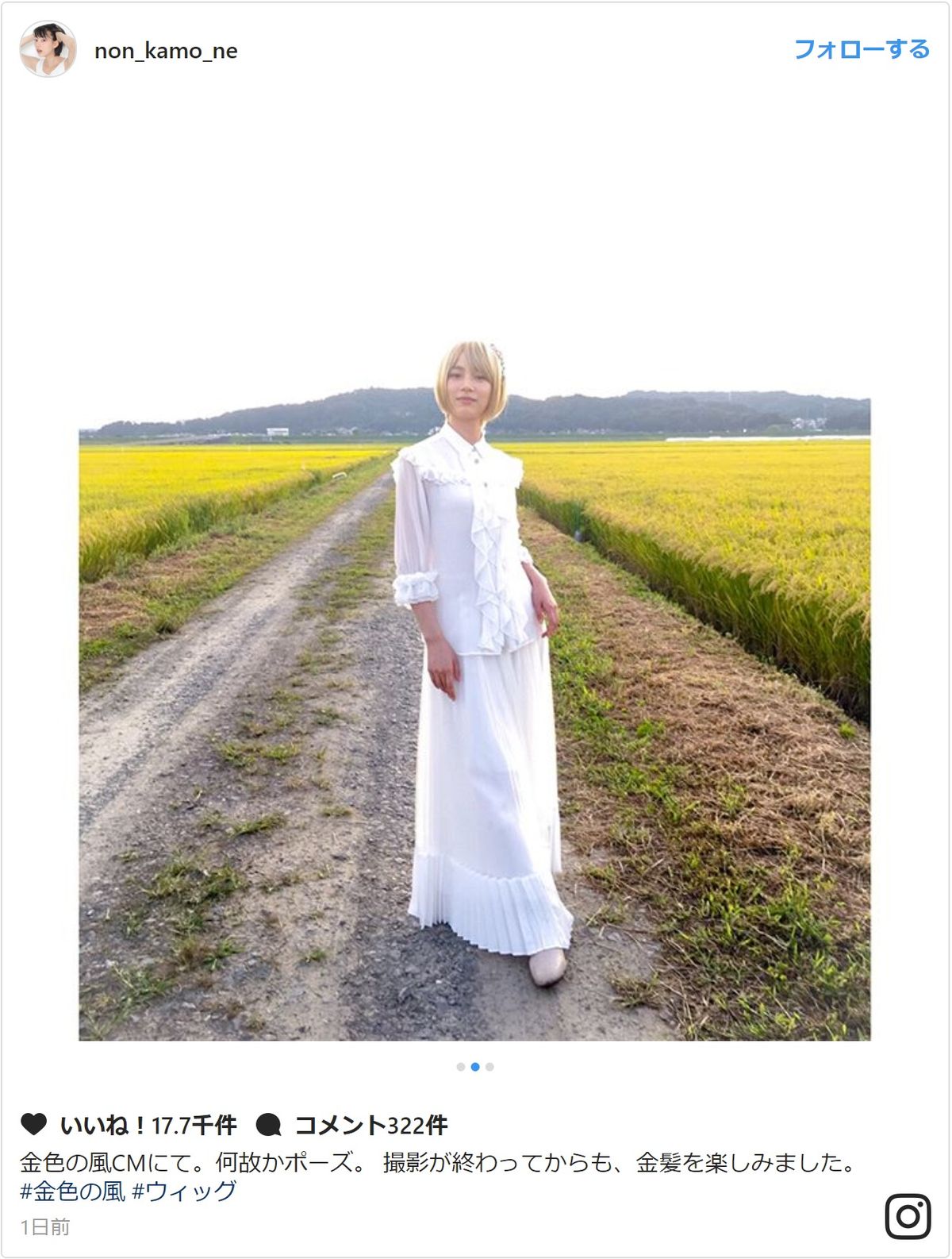 のんのInstagramには、「金色の風CMにて。何故かポーズ」とポーズを決める全身ショットも投稿され、「のんちゃん!金髪かわいすぎます」「かわいい!金髪似合います!天使のようです」「何処のお姫様かと思いました」といったコメントが続々。すでに映像を観たというファンからも「のんちゃんCMみたよ!すごくキレイで素敵だった~」「金髪にビックリしたけど超カワイかったです!!」と好評だ。(山田貴子)