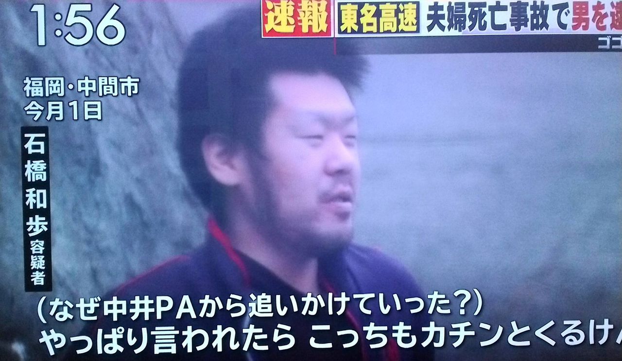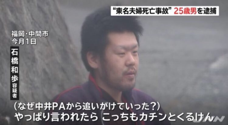 【東名夫婦死亡事故】 石橋和歩容疑者、「なぜPAから追いかけていった?」との質問に「やっぱこっちもカチンとくるけん」
