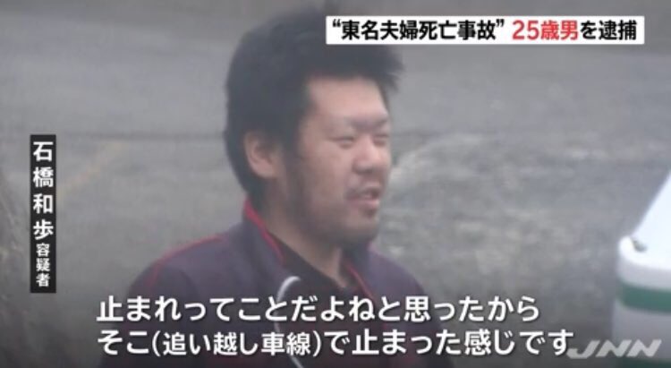 「そこ(追い越し車線)に止まったから」(石橋和歩容疑者〔今月1日〕)