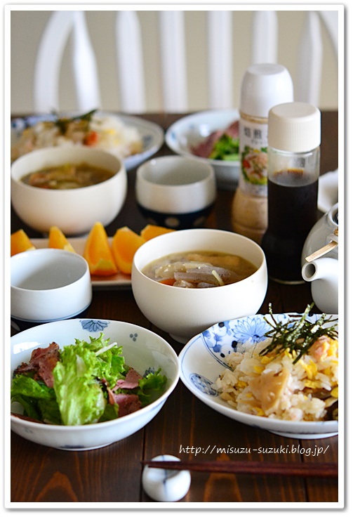 具だくさん豚汁も晩ごはんの残り。