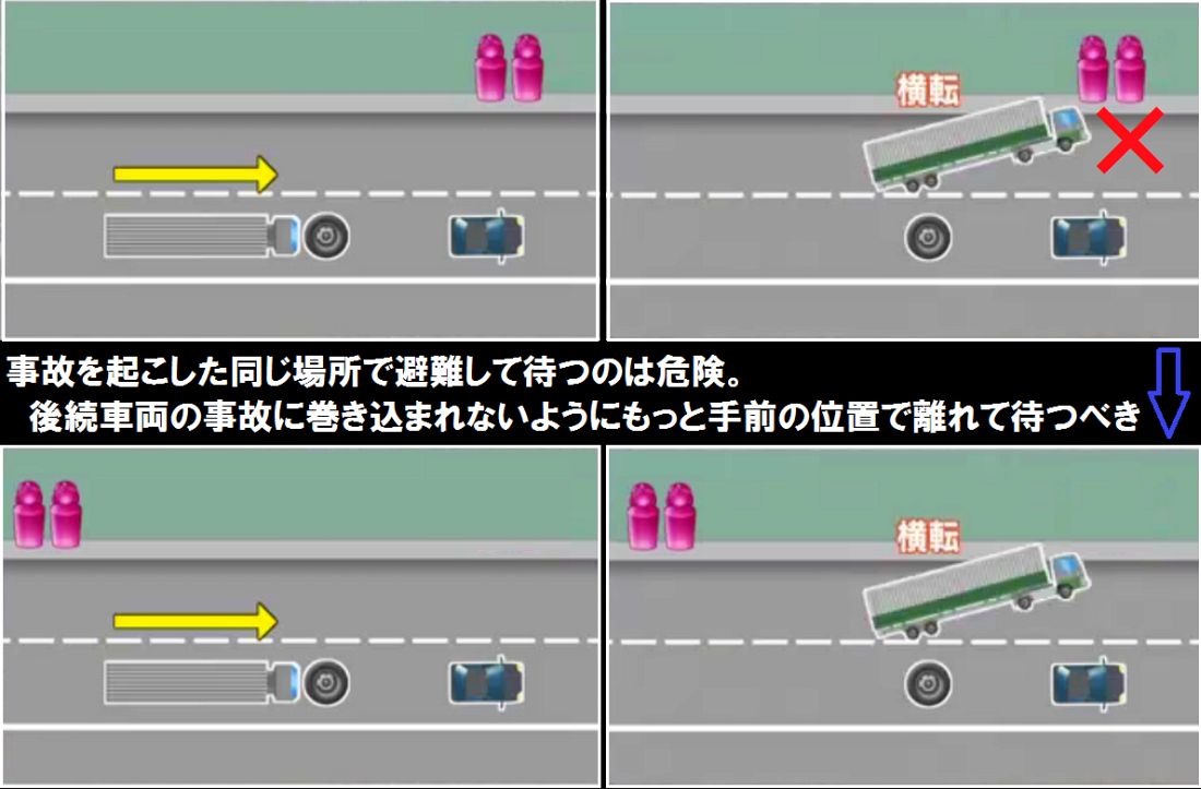 事故現場の手前に退避しなきゃ・・・