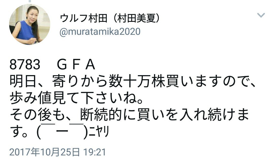 2017年10月26日 証券取引等監視委員会の塀の上で煽り運転中のウルフ村田さん、もう失うものなど何もないかのように堂々の相場操縦宣言 カテゴリ:投資家・デイトレーダー東証・証取委・金融庁・監査法人 銀と金 全11巻 福本伸行 スポンサーリンク コメント コメント一覧 1. 全力で名無しさん 2017年10月26日 21:06 ID:9BUVOquT0 さっさとクオカードでおけら雇えやSESC 2. 全力で名無しさん 2017年10月26日 21:07 ID:giS9vYBC0 法律しらんが、ツイートしてる人(本人?)が株の売買を一切していなければ、ただの嘘つきで済むような気がする。。。 3. 全力で名無しさん 2017年10月26日 21:08 ID:TiyMyBAS0 露骨すぎて信者がいるのが謎レベル 4. 全力で名無しさん 2017年10月26日 21:12 ID:3rnwi8eQ0 いや、本当に株の売買してたらとっくの昔に捕まってるでしょ。自身の口座もなくて売買してないからこれだけ好き勝手してるだけで。 5. 全力で名無しさん 2017年10月26日 21:15 ID:ELtoclZE0 法人口座でやってるから大丈夫ってそんなザル法あるわけないだろw ただ単なる仕手のスピーカーやってるだけだろw これで宣伝してセミナーで稼ぐんだろう。 コメントフォーム 名前 コメント 評価する リセット リセット 顔 星 投稿する 情報を記憶