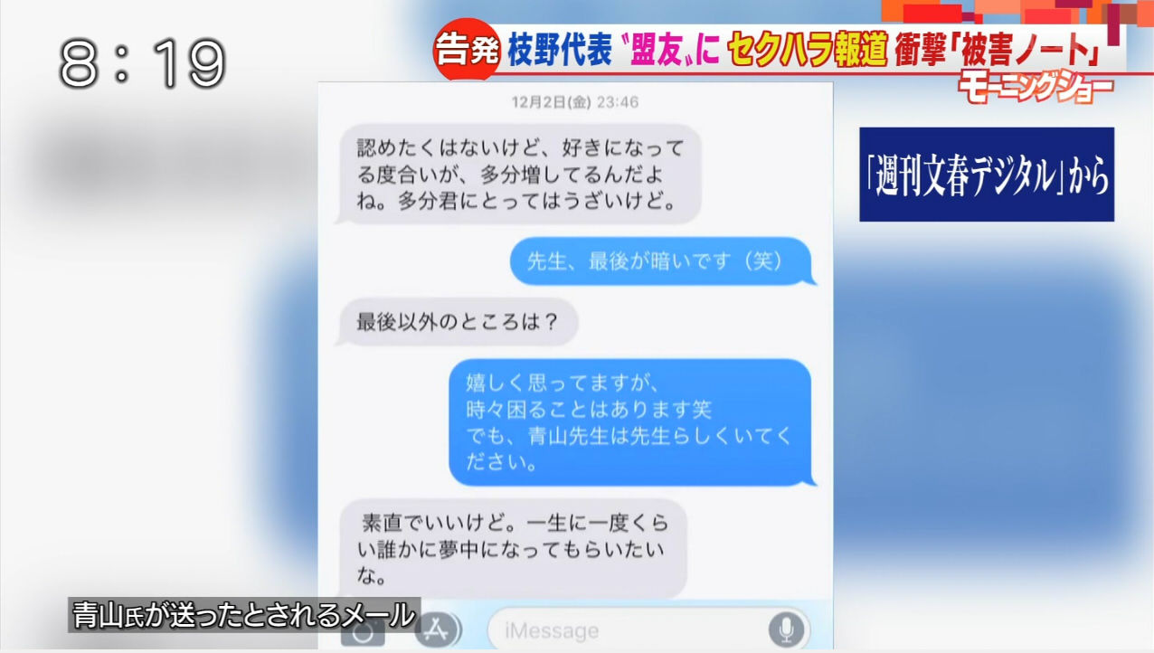 青山氏は本誌の直撃取材に対し、「抱きついたり、キスを迫ったりしたことはない」とセクハラを否定した。枝野代表は「事実関係を詳細に承知していませんので、コメントできません」と回答した。