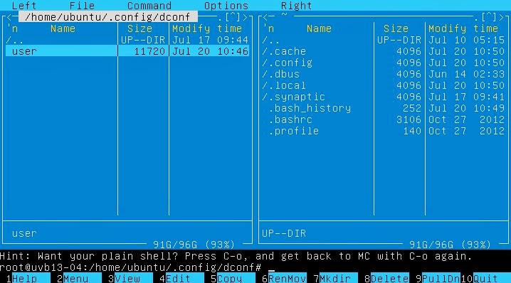 以下の画面は「Midnight Commander」です。