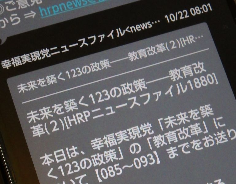 幸福実現党の違法な選挙運動用メールを受信した人は、最寄りの警察に通報しましょう。