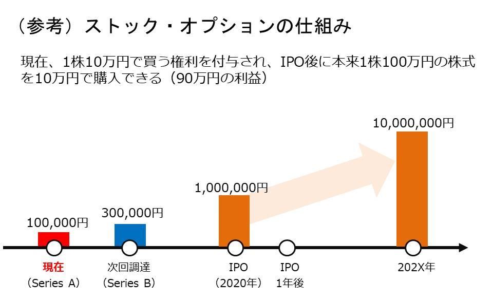 年収が下がる見返りとして、ストック・オプションを付与して、従業員の貢献に報いるスタートアップ企業は多いです。